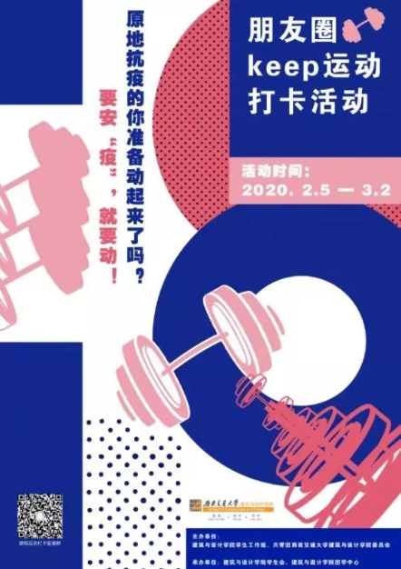 无妨,为更好展现建筑学子的积极心态,还原本该丰富多彩的假期原貌,建筑与设计公司学工组特开展此次为期26天运动打卡活动,希望有效地提高大家的锻炼频率,强健体魄,提高免疫力,对共同预防病毒感染,做出切实可行的有效措施。辅导员们将与同学们在这个假期一起动起来,具体通知如下: