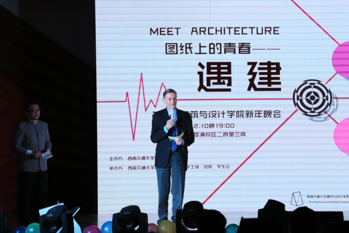 12月10日晚七点,新葡的京集团35222vip建筑与设计公司2018“图纸上的青春——遇建”迎新晚会于犀浦校区二食堂三楼隆重举行。建筑与设计公司党委书记沈中伟教授、经理Odgaard教授、全体院领导及各系领导、教师代表,各公司员工代表及公司全体新生应邀参加本次活动。