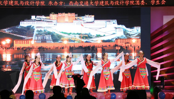 本次晚会以师生联欢为主线,打造国际份儿、民族份儿十足的联欢晚会,邀请了包括藏族同学、职工及周斯翔老师在内的8名主持人。晚会的表演分为三个篇章:“青春·记忆篇”、“旅途·希望篇”、“民族·情意篇”。首先,园林的老师们为大家带来歌曲《成都》,熟悉的旋律迅速占领整个会场,器乐合奏《童话镇的故事》、劲歌热舞《closer》将晚会气氛推向高潮。接着是幽默风趣的话剧《大话红楼》和温柔缱绻的合唱《老男孩》和《当你老了》。在互动游戏环节里,抽奖活动让同学们激动不已。之后,城规和建筑的老师们为大家带来气势澎湃的诗朗诵。钢琴独奏《月光第三乐章》悠扬婉转、合唱《明天会更好》热情洋溢。在“民族·情意篇”中,教师合唱《我和我的祖国》、《夜空中最亮的星》、诗朗诵《沁园春》获得大家的一致好评,富有设计专业特色的服装走秀《丝侗情》展示了设计系师生们的风采,歌曲联唱《不忘初心》让人深受感动,紧接着藏大班同学们带来的藏舞《情满草原》为大家展示了别样的民族风情。最后,晚会在“橙”合唱团的压轴演出《感觉身体被掏空》和《在灿烂的阳光下》中圆满落下帷幕。