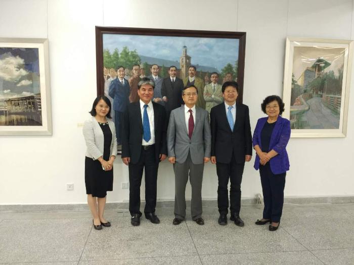 洪毅教授根据校史记载专门创作的两幅油画作品《竢实扬华之一、之二》,表现了1912年9月,孙中山先生视察唐山路矿学堂;以及1958年9月,刘少奇、周恩来视察唐山铁道公司的历史画面。作品彰显了交通大学源远流长的光荣历史。