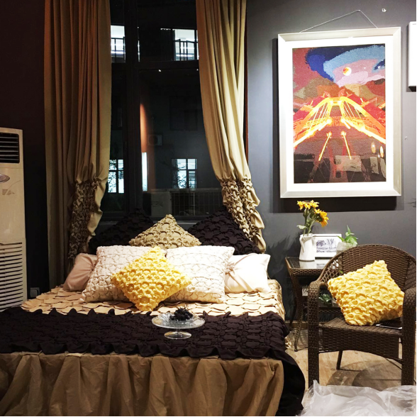本届展览作品数量庞大、材料形式多样,艺术语言丰富、艺术创意及构思充沛,走进不同的展厅都有不一样的体验,让人目不暇接。几十位毕业生的展品各富个性,毕业生们将四年的心血凝结在自己的作品上,耗费了大量的人力物力,终于为自己的老员工活交上一份满意的答卷。由环境设计专业软装方向的毕业生设计的毕业设计展品运用了扎染、印染、针织、毛线绣、乱针绣以及羊毛毡等多种表现手法。结合恰当的材料以及不同的表现手法,严格的制作工序,认真把控每一个细节,来表现不同的风格,给人以视觉上的冲击和美的体验。绘画专业的同学用自己的画笔展现出了不一样的世界。工业设计系的毕业生们将自己的一个个服务于生活的创意设计转化为实体,展品覆盖了桌椅、洁具、灯具、汽车等多个方面,每件展品都是他们结合生活经验与设计思维,在老师的帮助下一步步细化,不断改进,反复推敲,既考虑了实用性又兼顾了美观性。无论是图纸还是实物模型,都让人赞叹他们的富有创意且细腻的思考方式。