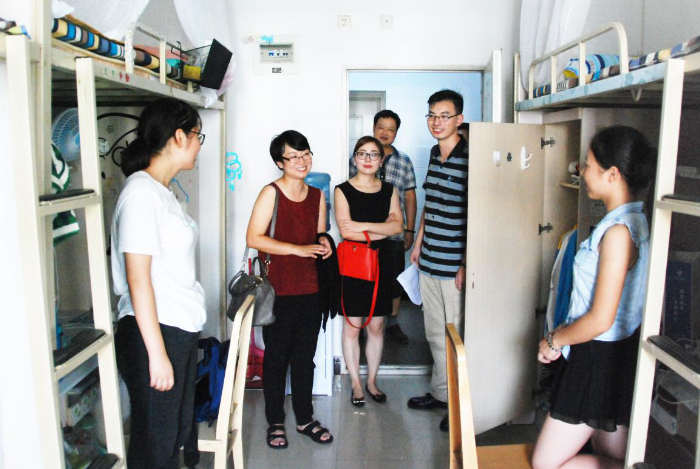 院领导在深入宿舍亲切慰问看望2016级新生的同时,并要求相关职能部门认真做好宿舍安全检查工作,并对宿舍安全,特别是防火、防盗以及员工人身安全等方面工作提出要求。