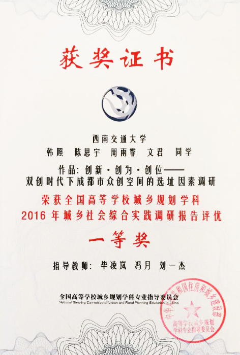 员工们优异的获奖成绩充分体现出在公司的领导关怀和大力支持下,公司城乡规划教育实力的提升和专业发展,同时也展现了2012级城乡规划本科生竢实扬华,自强不息的交大精神!我们定当继续努力,再创佳绩。