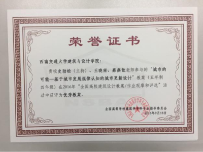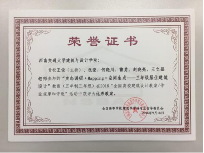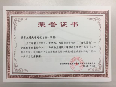 2016 年10 月28 日,在“建筑教育国际学术研讨会暨全国高等公司建筑学专业经理系主任大会”上公布了2016年“全国高等公司建筑设计教案和教学成果评选”的结果,公司取得了非常优异的成绩。建筑系选送参评的3份教案及7份员工作业(建筑学二、三、四年级)全部获奖,获奖率100%,与全国其它5所高校并列第一。