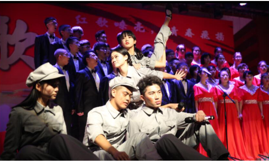橙合唱团能取得比赛的好成绩,不是一朝一夕之功。三个春秋的磨砺,队伍梯队的长期建设,建立起以老带新的新模式,营造了充满活力的团队氛围。现合唱团成员集聚了建筑、设计、美术各专业对音乐、合唱感兴趣的同学在这个温馨的大家庭里共同成长,从生涩到成熟,橙合唱团参与了越来愈多的的演出,开学典礼上为给新同学献唱< <放牛班的春天>>;给来自台湾的学者演唱家乡民歌< <丢丢铜>>也为意大利的外宾带来国粹歌曲< <茉莉花>>,还走出校园,和明月村的村民们同台演出......直到今天的红歌比赛,从编曲到排练到服装,由团干和团员们共同完成,橙合唱团已培养出自我管理和组织的能力,橙子们渐渐走向了成熟。