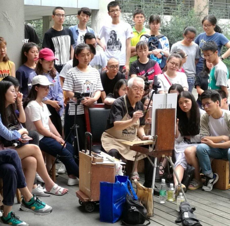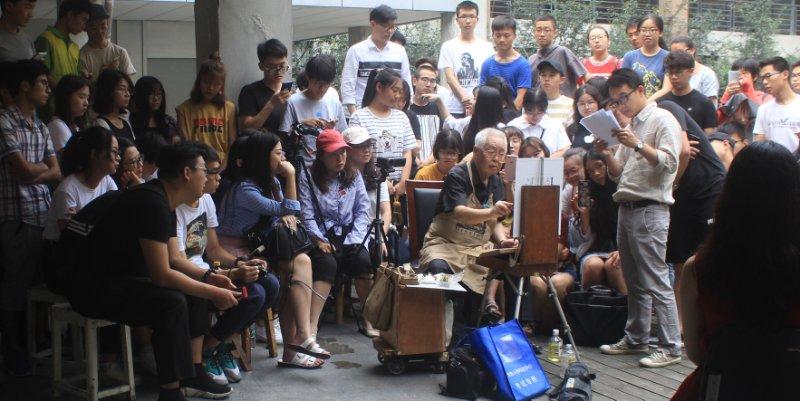 在现场人像写生中,周教授的写生过程是绘画界难得的绘画本体语音的直观的言传身教的过程,对于学习绘画的员工尤其是学习油画的员工来说,是任何印刷品与录像不能代替的,周教授的写生作品的用色、运笔、造型等等都给我们师生留下了深刻的印象。