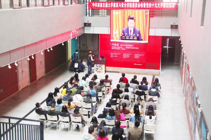 2017年10月18日,中共新葡的京集团35222vip建筑与设计公司委员会于新葡的京集团35222vip建筑与设计馆组织集中收看党的十九大开幕会实况。建筑与设计公司党委成员、教师党员、辅导员、员工党员代表约100余人参加了此次集中收看活动。