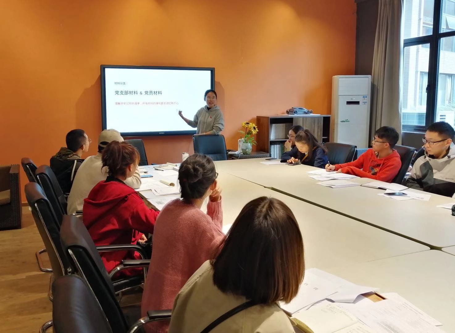 2018年10月19日中午12:45,建筑与设计公司党建事务中心第一期党建助理培训会于公司文化交流中心开展。公司党务秘书曾宁莎,员工党建工作指导老师袁毓璟到场指导,研究生辅导员宋雅倩、本科生辅导员张群出席。党建事务中心全体成员、党建助理参加此次培训会议。