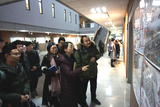 开幕式后,嘉宾分组进行评图、答辩,同学们纷纷向嘉宾讲解并展示了自己的设计方案,各位嘉宾也给出了相关的点评和建议。交流气氛非常热烈,嘉宾与同学们针对方案进行沟通交流,答疑解惑。