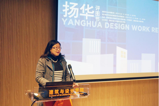 公司副经理杨青娟老师,党委副书记刘一杰及系领导,专业老师、同学代表参加“扬华评图节”城乡规划与风景园林专场活动,规划专业副系主任毕凌岚老师主持活动。