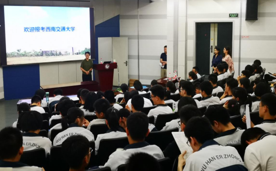 在武汉市华中师大附中的走访宣讲时公司党委副书记刘一杰向宣讲会上的家长介绍了公司基本情况,欢迎对公司感兴趣的家长带孩子高考后来成都看看,也可以来交大校园参观,欢迎报考新葡的京集团35222vip。随后,宣讲团成员付飞副教授简单介绍了公司建筑类相关专业情况,宣讲团成员高晗雨、王雪、孔翔榆分别介绍了其他专业和招生录取情况。