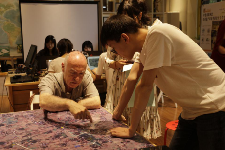 6月14日,Meriggi教授在地图上向同学们讲解他对基础设施布置的想法,分别要求两组的同学们查找基础设施建设的相关案例及模型,并对幼儿园和养老设施进行方案设计。两个小组经过组内短时间的讨论后分别向教授讲解了小组的基础服务设施建设的基本思路,教授提出了相关的意见。大家分工协作进行模型推敲,电脑绘制分析图和建构模型,查找相关案例资料和制作PPT进行成果汇报。