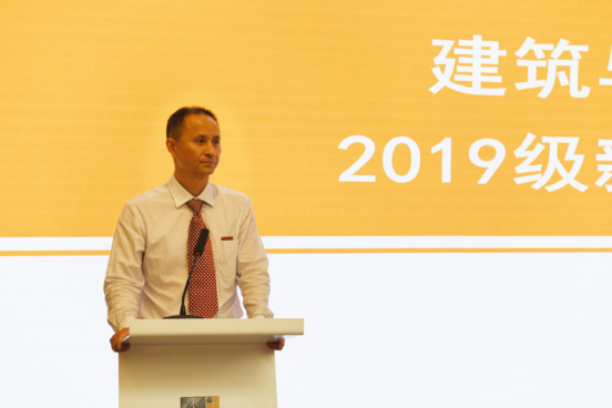 随后,公司执行经理沈中伟教授致辞。沈经理首先代表全院师生员工表达了对公司全体新生的欢迎。同时也向培养精心培养员工的家长和老师致以崇高的敬意。提出了对2019届新生的希望,希望他们既要有思辨能力,也要有批判精神,同时坚定信念,百折不挠,时刻保持自信与自立!之后简要介绍了建筑与设计公司的专业概况与成就。青年要有梦想,国家才有希望。沈经理希望同学们抓紧时间,扎实学习,培养高洁的操行,树立正确的人生观价值观。最后再次真诚祝愿同学们在未来的大学学习生涯中健康快乐,学业有成!