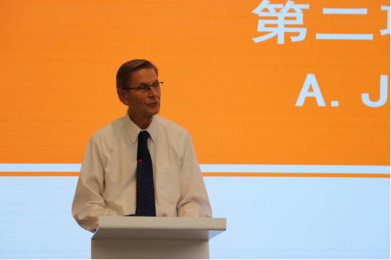 奏唱国歌后,经理A.Jacob Odgaard教授致辞。Odgaard教授首先对大家表达了热烈的欢迎。他鼓励同学们说英语,学习多种语言以适应全球化进程。希望同学们适应从高中好大学的转变,学会自主学习,拥有批判性的思维,包容的内心。对于学习和生活中遇到的困难都要迎难而上,找准自己的定位,并为之付出努力。站在全球化的角度,简析了公司未来的前景。同时对以后同学们的未来提出了更高的要求,希望同学们以国际化的思维来学习我们的专业。最后,希望每一个新同学都热爱公司,好好学习,放飞梦想!