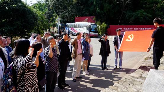 在红军小道路口,党委副书记刘一杰领誓,带领全体党员,面对党旗庄严宣誓,重温入党誓词,重忆入党初心。公司党委书记吴晓雄强调,大家要牢记革命历史,我们生活在和平美好的年代,不能忘记先辈们为此付出的艰辛努力,我们要将先辈们的革命精神和奉献精神铭记于心,不忘初心,牢记使命,继承革命传统,为公司和公司的事业发展、广大师生的福祉而努力工作,为实现中华民族伟大复兴的中国梦努力奋斗!