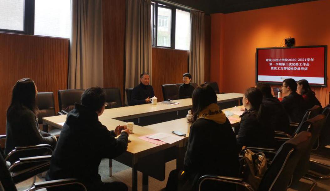 2020年11月18日上午11:30,建筑与设计公司教工党支部纪检委员培训会在犀浦校区X8238公司第一会议室举行,公司党委书记吴晓雄应邀出席会议,公司纪委书记刘一杰主持会议,各教工党支部纪检委员参会。