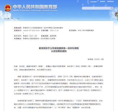 此次推出的国家级一流本科课程主要有四个显著特点:一是课程质量高,一大批两院院士、资深教授踊跃参与;二是课程类型多,专业课程、基础课程、通识课程、实验课程、社会实践课程均有涉及;三是参与范围广,从国家重点高校到地方高校,实现了所有本科专业的全覆盖; 四是示范效应强,突出教学与前沿技术的结合,创新理念与学科专业结合,有效推动优质资源和先进理念的更大范围的应用共享。