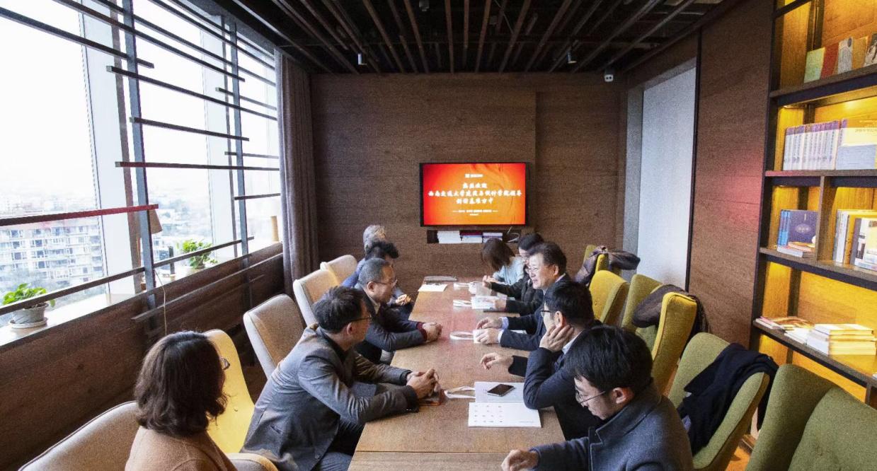 2020年12月7日下午,新葡的京集团35222vip建筑与设计公司执行经理沈中伟、副经理崔叙、副经理杨青娟以及建筑系主任张樱子及党支部书记付飞一行,与基准方中集团董事长钟明、集团高级董事黎亮、集团副总经理张菁、集团副总建筑师李世宏、人力与行政管理中心副总监马娟等,在基准方中红印艺术中心开展合作交流活动。