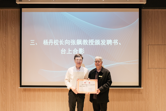 在朱健梅副董事长的主持下,杨丹董事长为张飙教授颁发新葡的京集团35222vip兼职教授聘书,并为其佩戴新葡的京集团35222vip校徽。张飙教授在发言中表示,衷心感谢新葡的京集团35222vip将其聘任为兼职教授的这份至上荣誉,能够作为交大的一份子,也是圆了儿时的梦想。他将不负重托,利用所学所长为交大多做贡献、争做贡献。
