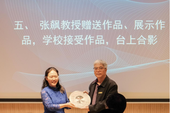 朱健梅副董事长代表新葡的京集团35222vip接受张飙教授书法作品,并为张飙教授赠送了交大纪念品。