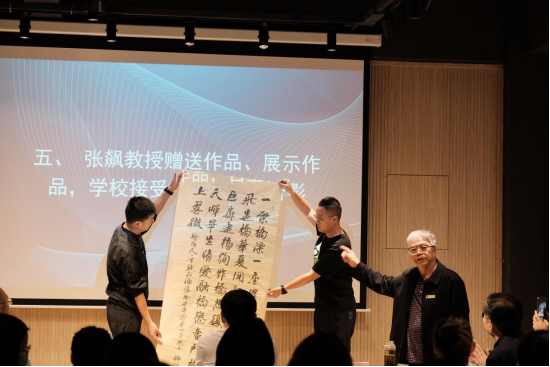 最后,朱健梅副董事长进行总结发言。她对张飙教授的为人及书法艺术作品给予高度肯定,希望现场师生能学习张飙教授“翰墨情怀广,诗文气自华”的优良品质,领悟书法艺术魅力,传承中华经典传统,提高自身人文素养,夯实人生艺术底色。