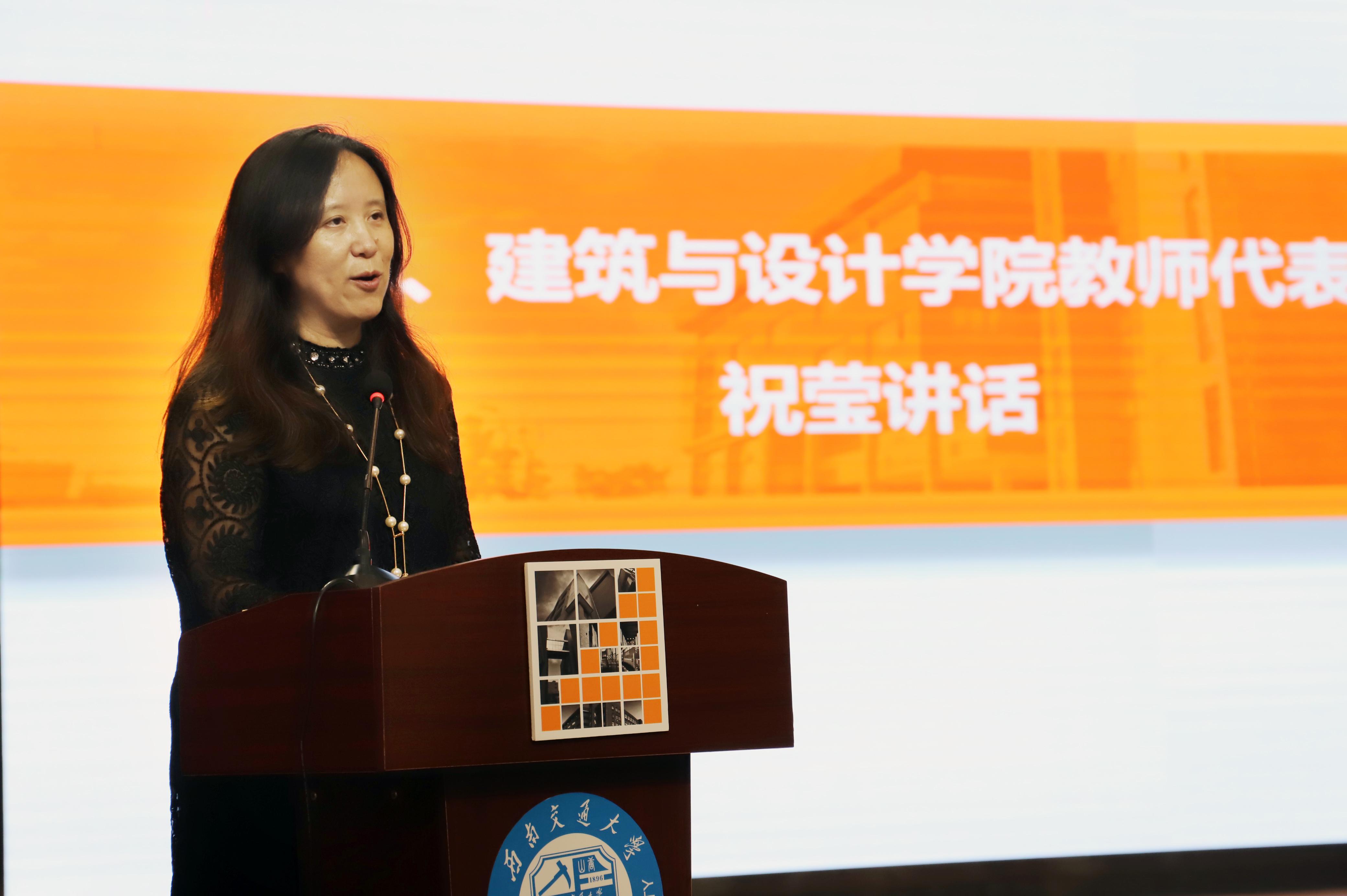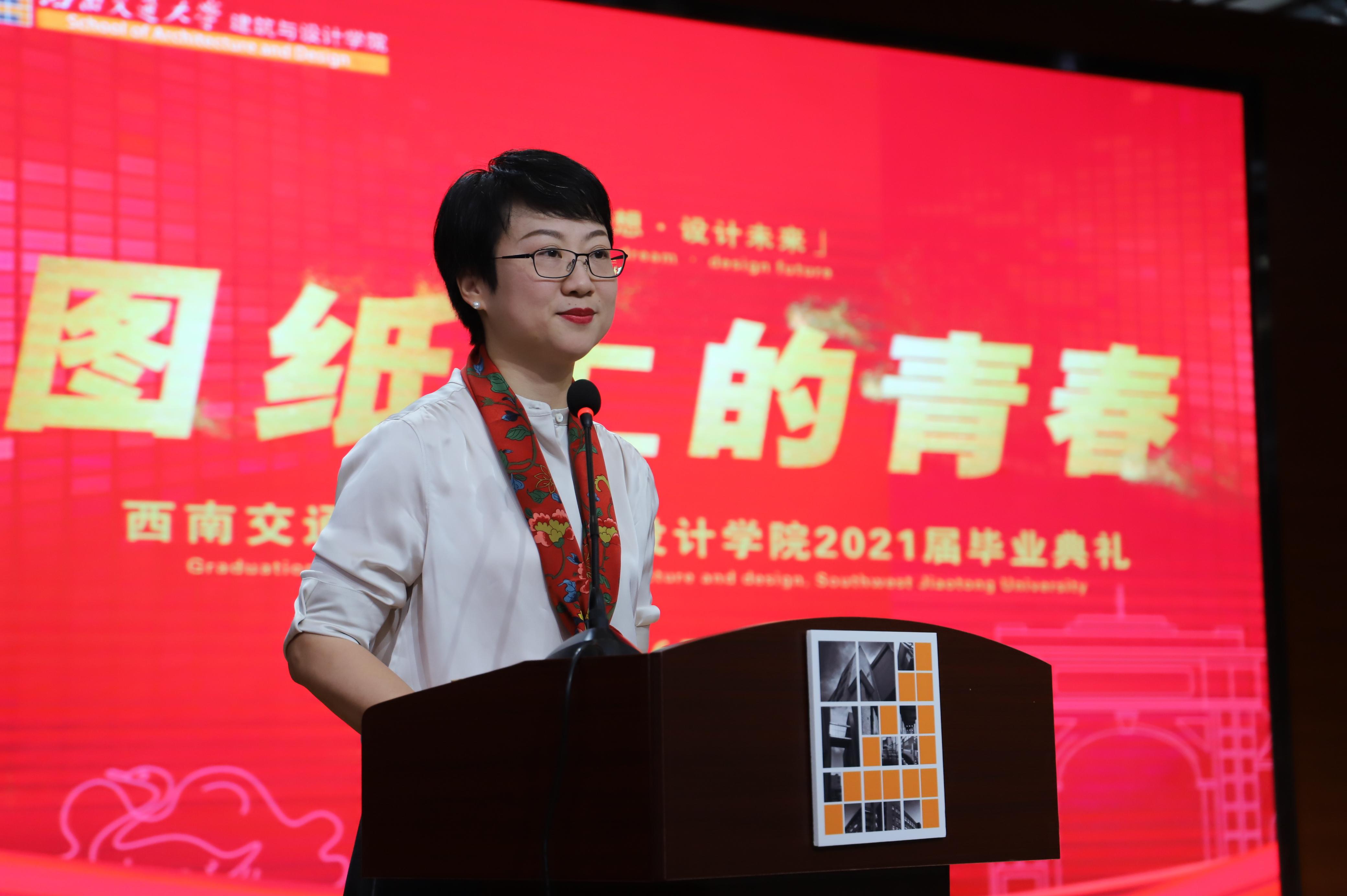 建筑与设计公司教师代表、2016级建筑学1班班导师祝莹副教授进行了发言,为毕业生送上祝福。她希望同学们确定自己的人生目标,坚信前路有光,未来熠熠生辉、捷报频传。