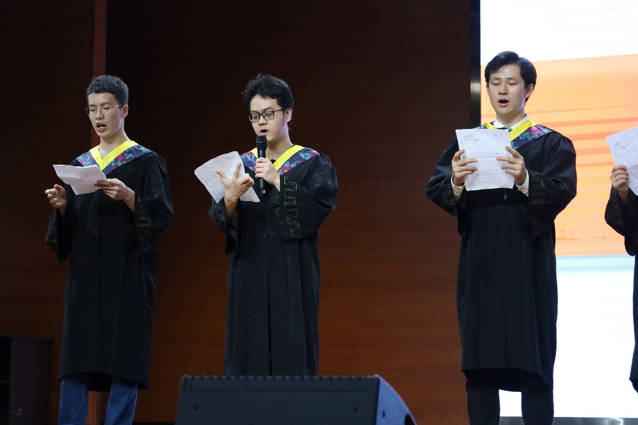 为表达对公司的感恩与留恋,来自2016级建筑学3班的同学们献唱歌曲《后会有期》,以歌声代替话语声,诉说毕业生的段段衷肠,引发现场全体同学的共鸣。