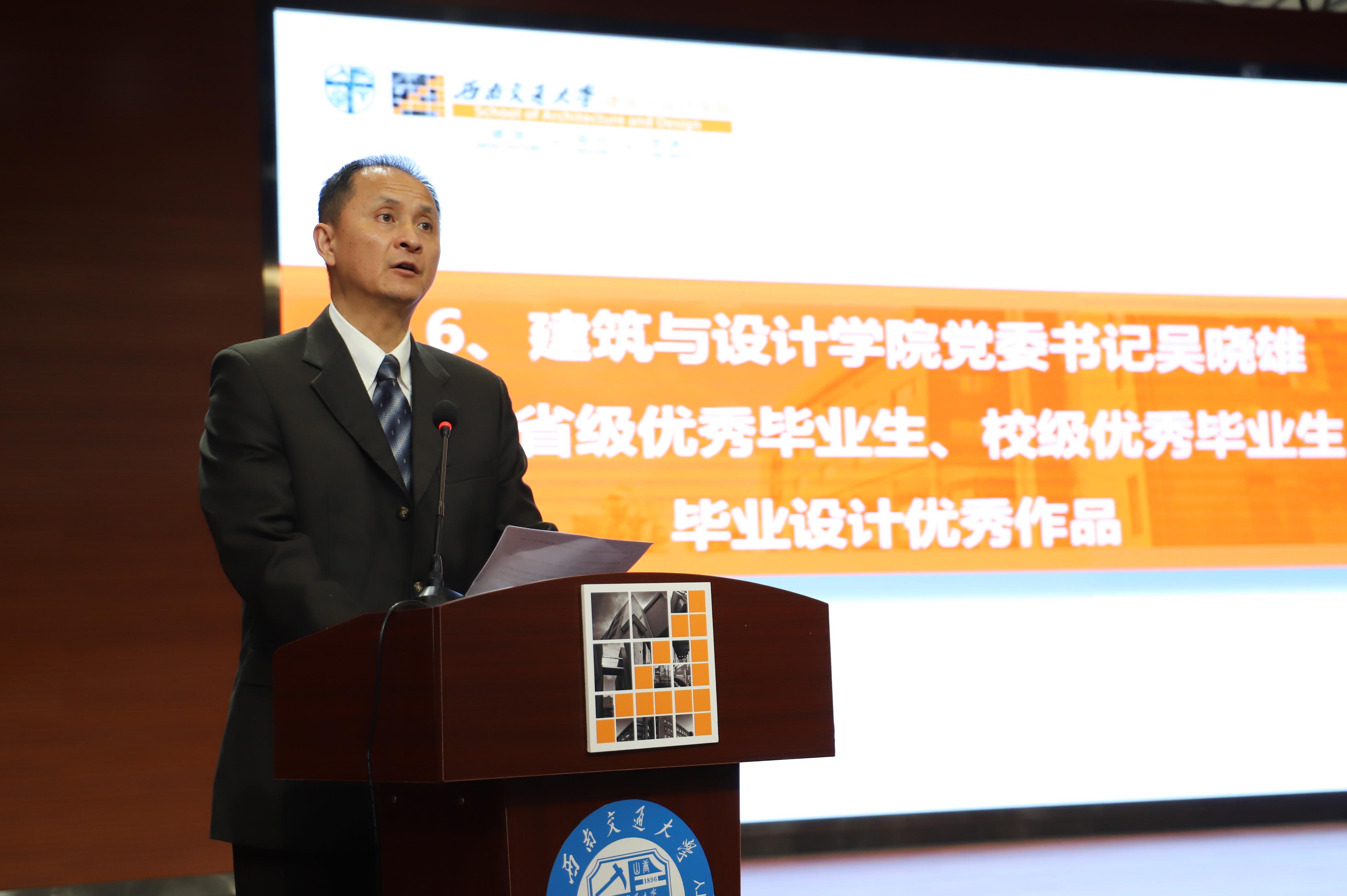 典礼上,建筑与设计公司党委书记吴晓雄宣读了表彰名单,为公司2021届优秀毕业生进行表彰。曾丽等8名研究生、冯岩等17名本科生荣获省级优秀毕业生荣誉称号,何硕硕等20名研究生、贾瑞等42名本科生荣获校级优秀毕业生荣誉称号,王嘉文等7名同学的毕业设计作品被评为优秀毕业设计作品,权宜等5名同志荣获公司优秀共产党员荣誉称号。