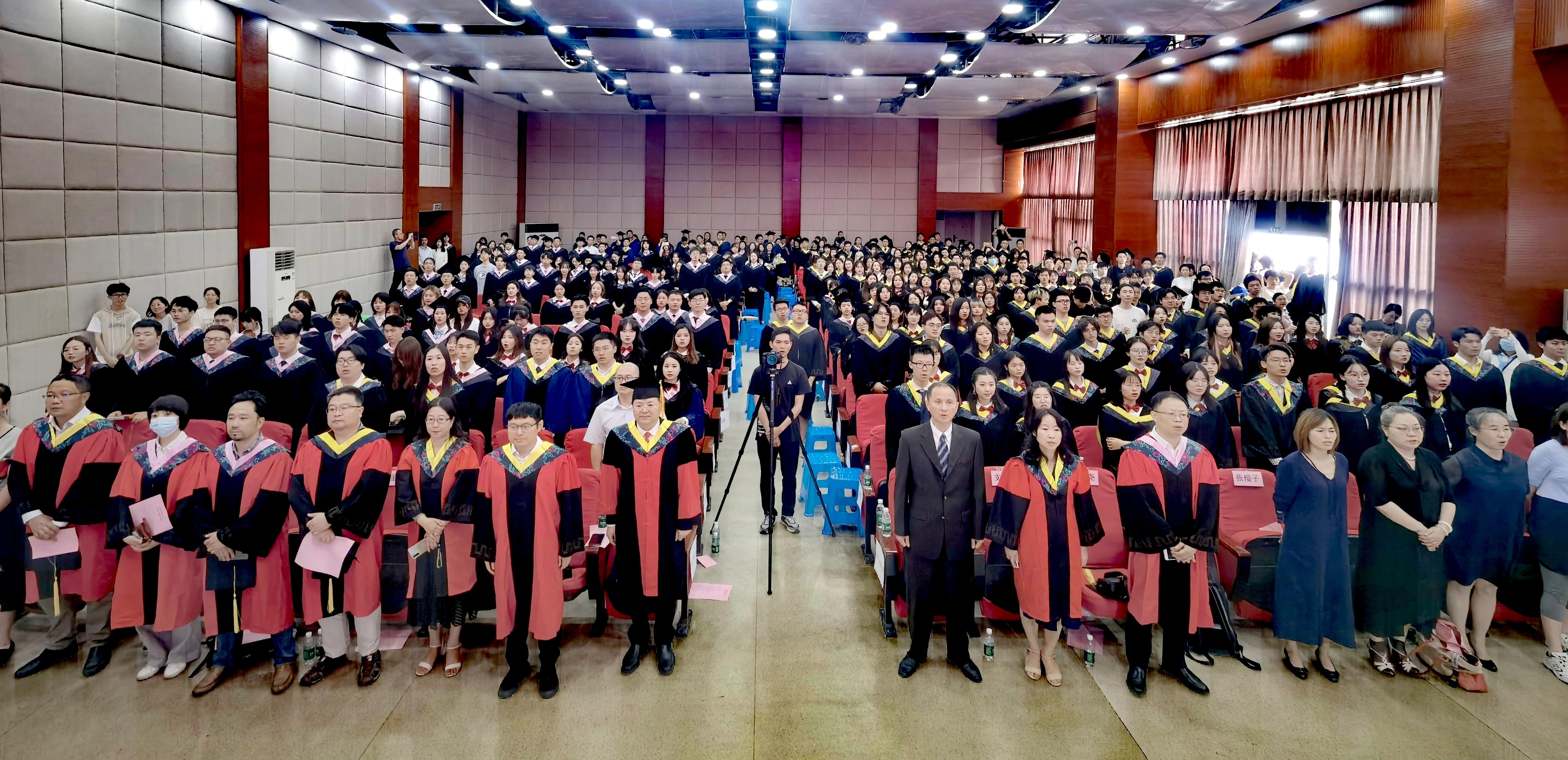 典礼在一系列暖心的毕业专题视频中拉开序幕。国歌嘹亮,全体师生首先奏唱国歌,共表爱国恒心。随后,建筑与设计公司经理沈中伟发表致辞,为毕业生上“最后一堂课”,寄予四点希望:一是要仰望星空,不改奋进底色,做一名有温度、有情怀、有风骨的建造者。二是要脚踏实地,担当不失责任,用努力、担当和责任走好人生每一步。三是要勤于思考,学懂弄通悟透,认清事物本质,把握发展规律,不让眼前的浮华牵绊前进的步伐。四是要视野宽阔,开阔胸怀,提升格局,抓住机遇,走向成功。