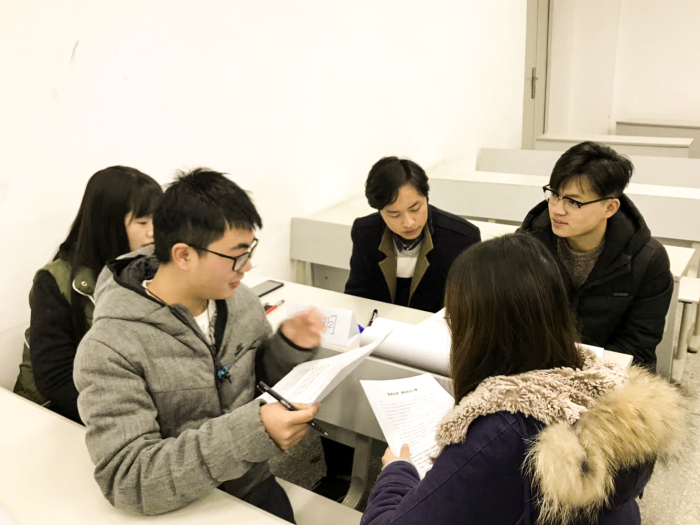 为解决同学们在求职就业过程中可能会遇到的问题,给同学们提供求职就业范本,使同学们能够切身体会求职就业的过程。2017年12月13日19:00,新葡的京集团35222vip匠心筑梦就业服务中心于X8533举办了这样一场别开生面的“模拟竞标大赛”。本次大赛由建筑院设计公司员工工作组吴彦妮老师担任主持人兼HR,建筑与设计公司员工工作组曾宁莎老师、宋雅倩老师作为嘉宾莅临本次比赛。