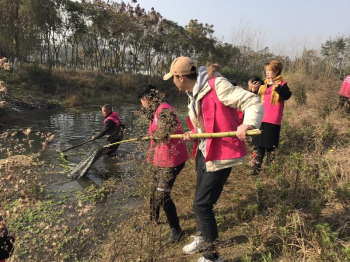 此次活动由研2017级设计学党支部与成都市河流研究会合作,在早上八点班级党组织志愿者就前往郫都区水源地临石村湿地公园,清源活动安排在早上10点钟,在活动开始之前由护水队成员带领全体志愿者前往水源地湿地公园进行参观,在朦胧的雾霭中队员为我们详细介绍了关于湿地公园的建设以及保护方面的工作,并且带我们参观了护水队所守护的成都市非常重要的饮用水源河-柏条河,让我们意识到护水工作的重要性。参观完之后我们回到临石村的水环境教育中学,全体志愿者充分发挥本专业优势对当地的关于水资源保护、环境保护宣传墙绘有掉色的部分进行修补,让其他人员通过图像的形式加深了解对于水资源保护和环境保护的知识,为美化乡村环境贡献自自己的绵薄之力。上午10点,护水队员协同成都城市河流研究会的工作人员、党支部志愿者和村民志愿者开展了清源活动,志愿者们带上钉耙、扫帚、捞网、捡钳等工具把湿地公园全程路道上面的落叶、沟渠里的垃圾全部都清理了一遍,让污水重见清澈,让道路干净利落。