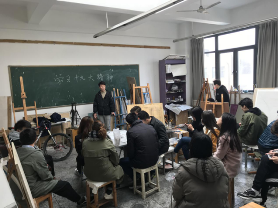 12月17日下午两点16级绘画班团支部就“不忘初心跟党走”主题团日活动在X8520顺利开展。团支书带领团员们就这一话题开展学习。简要内容如下:习近平总书记在党的十九大上作的报告,深刻指出中国特色社会主义进入新时代,深刻阐述了新时代中国特色社会主义思想,对从现在起到本世纪中叶把我国建成社会主义现代化强国作了战略安排,对今后一个时期党和国家各项事业发展作出全面部署,并专门就青年一代承担使命、接力奋斗作了强调,指出“中国梦是历史的、现实的,也是未来的;是我们这一代的,更是青年一代的。中华民族伟大复兴的中国梦终将在一代代青年的接力奋斗中变为现实”,强调“广大青年要坚定理想信念,志存高远,脚踏实地,勇做时代的弄潮儿,在实现中国梦的生动实践中放飞青春梦想,在为人民利益的不懈奋斗中书写人生华章!”报告蕴含的丰富思想内容、作出的重大战略判断、规划的宏伟目标蓝图、推出的重大战略举措,特别是对青年的殷殷期待和谆谆嘱托,为广大青年奋勇投身新时代、接力建功中国梦指明了前进方向、注入了强大动力。讲到这儿,团员们都纷纷表示要做一名优秀的共青团员,爱党爱国家。