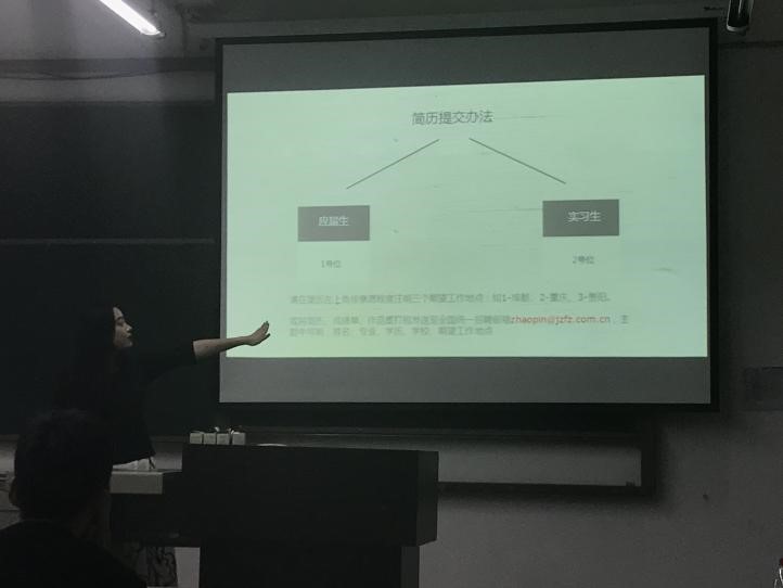 为了帮大家有个更好的就业面试的发挥,4月12日,公司匠心筑梦就业服务中心,在公司招就处和院团委的指导下,组织开展了“地产HR面对面——面试技巧及简历提升”就业指导讲座,在活动中请来了基准方中的hr吕薇女士为大家解惑,在活动中,HR给大家详细的介绍了在入职场中的一些面试技巧,生动的为大家讲述了日常使用到的一些面试礼仪,为大家讲述了一个成功的面试里面包括了面试礼仪,个人自信,谦逊交流,充足的作品等等,为大家入职场的面试准备也打了一针强心剂,明白了面试中要注意到的一些问题。