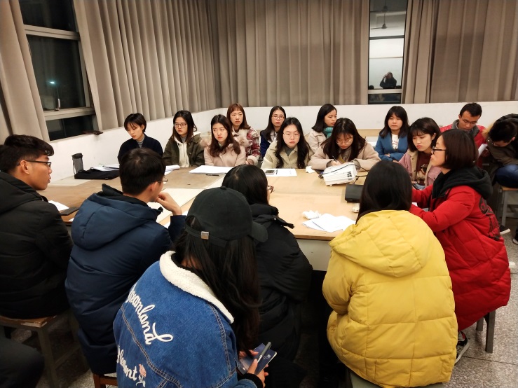 接下来是民主评议环节。按照支委年度工作汇报、党员自我评价、党员互评、民主测评的程序进行。以实事求是、民主公开为原则,支委首先就2018年度的工作进行了深刻总结,提出组织生活会开展的尚存思想教育与专业研究贴合度不高、理论学习素材不够丰富充实等问题。党员们逐一从思想、工作、学习等方面积极开展批评与自我批评,认真查找自身存在的不足,深刻剖析问题产生的原因,也对以后的学习及工作目标谈了自己的认识和计划。党员之间,本着更好帮助他人成长发展,真诚地从学习态度、工作细节等方面对他人做出批评。最后,参会人员认真填写民主评议党员测评表,以无记名投票方式,对本支部每个党员及支部委员会进行测评。