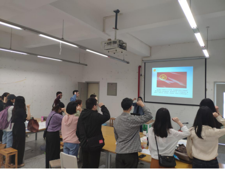 课堂的最后,大家重温了入团誓词,并进行了再次宣誓。同学们感触颇深,对自己的共青团员身份更加认同,信念更加坚定。班级邀请到了研工业设计党支部的党支书肖涛鲡针对本次团课进行了点评。肖涛鲡同志表达了对班级同学的殷切期望,并希望各位团员同志刻苦学习,积极做好团支部内任务,发扬团员的先进性,积极向党组织靠拢。