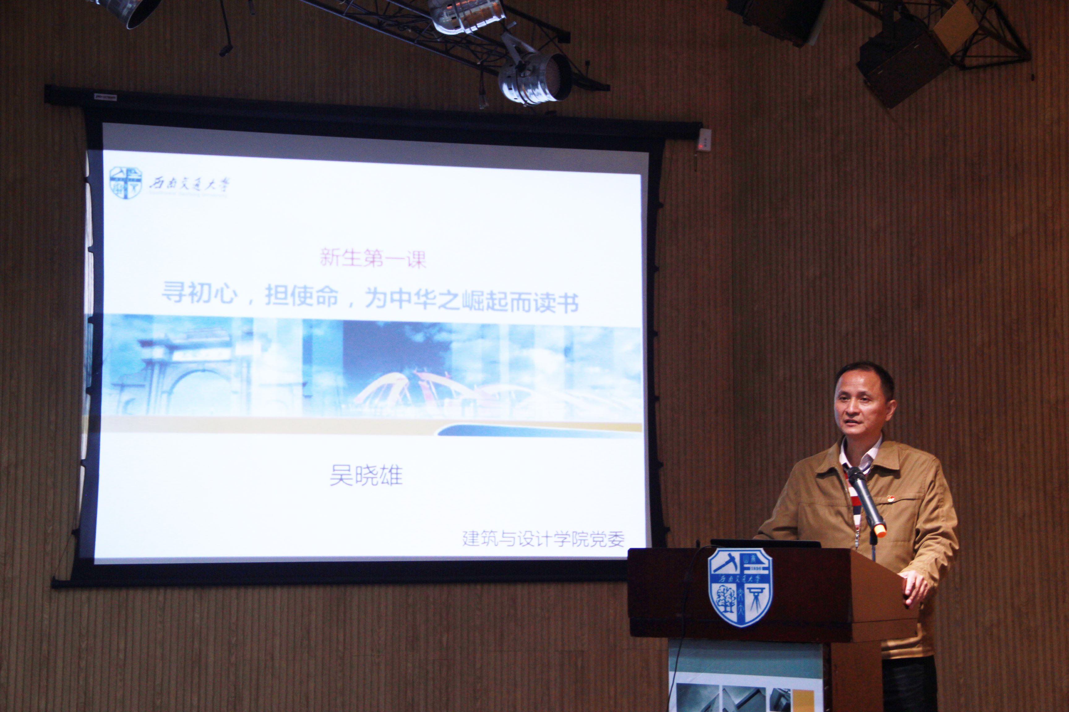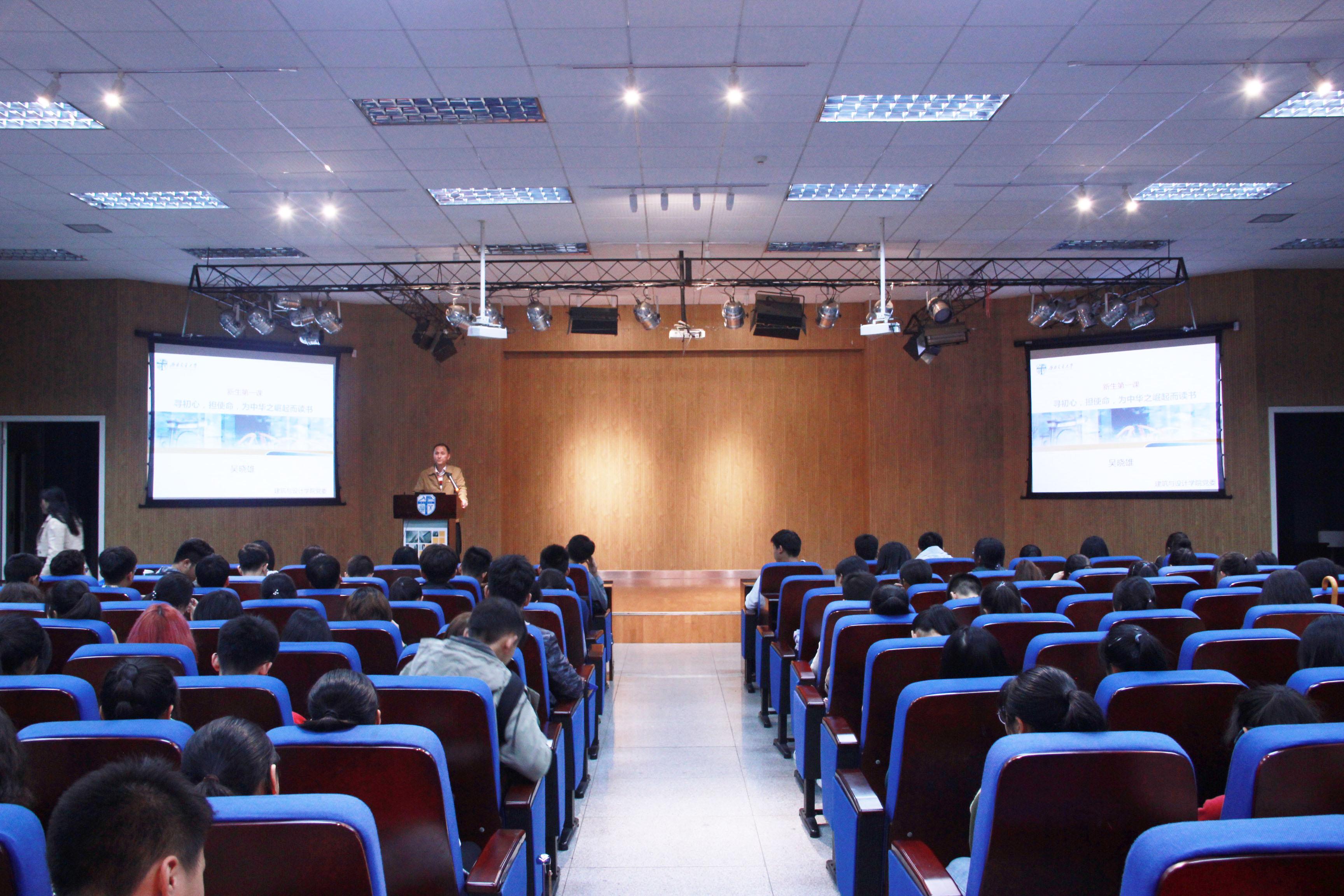 为抓紧新生的思想教育工作,10月21日晚19点,公司在建筑与设计馆300报告厅开展了“不忘初心,牢记使命”主题教育,公司党委书记吴晓雄给同学们带来了一堂主题为“寻初心,担使命,为中华之崛起而读书”的新生第一课。辅导员周冶、曾琳茹、袁毓璟老师和2019级全体新生们参加了这次教育。