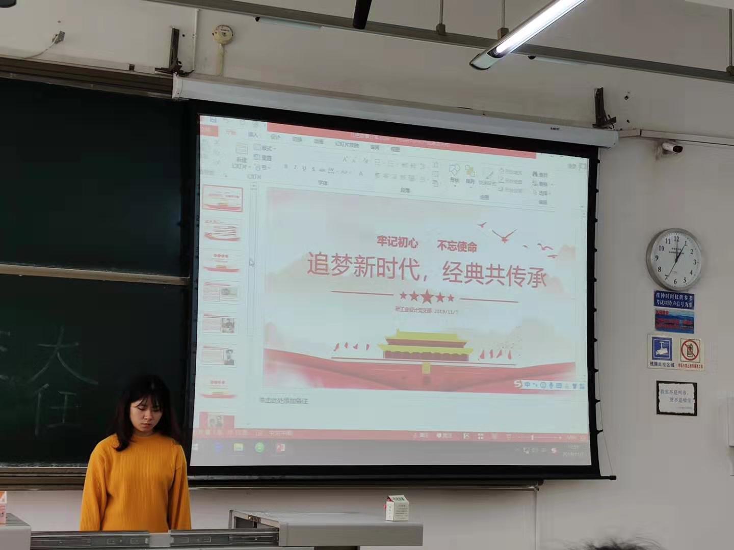 为深入开展“不忘初心、牢记使命”主题教育,研工业设计党支部于2019年11月7日下午一点在1号教学楼X1212准时开展了“追梦新时代,经典共传承”经典红色故事分享的主题党日活动,出席本次活动的有研一部分党员同志和研二部分党员同志。通过这次经典红色故事分享活动,进一步推动了学习习近平新时代中国特色社会主义思想往深里走、往心里走、往实里走,各位党员同志的思想和觉悟有了进一步的提升。