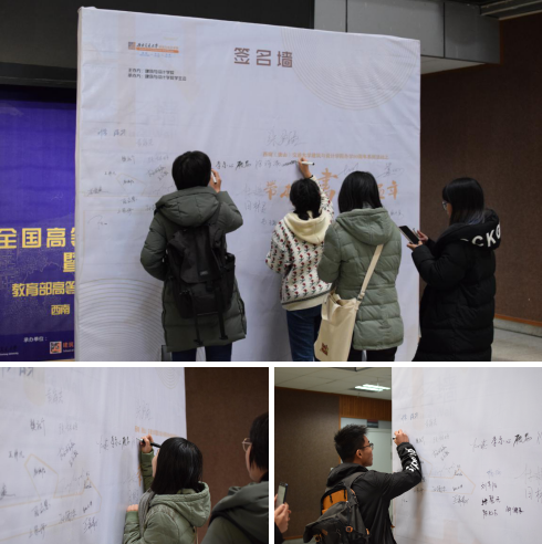 11月22日中午11:00,建筑与设计公司员工会在建筑与设计馆中庭举行“带一本好书回家”寒假读书动员活动的签名会,2019级的本科生依次在签名墙上签名报名参加本次读书活动,用书本丰富自己的寒假时光。