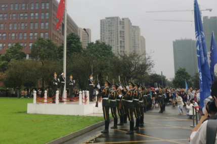 上午7点40分,团支部的员工们已早早在广场队列整齐,护旗手更是在旗杆下伫立多时。八点整,一切准备就绪,升旗仪式正式开始,国旗护卫队迈着庄严而整齐的步伐走到旗台下。“升国旗,奏国歌,全体师生行注目礼!”伴随着庄重嘹亮的国歌,五星红旗冉冉升起。同学们怀着激动的心情,摇晃着手中的旗帜,自豪的在国旗下合影留念。