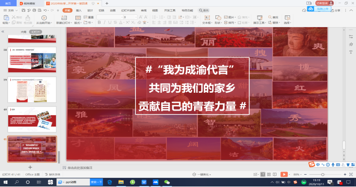 2020年10月11日19点,建筑与设计公司研2019级城乡规划团支部于利用腾讯会议线上平台开展了主题为“带你走近‘成渝地区双城经济圈’”的第一堂团课学习,团支部38名团员全部准时参加第一堂团课的学习。