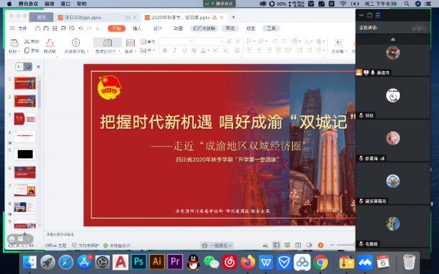 为带领广大青年员工了解“成渝地区双城经济圈”,2020年10月6日晚八点,建筑与设计公司研2020级建筑学学硕班团支部开展了以“走进‘成渝地区双城经济圈’”为主题的团日活动。本次活动采用线上会议形式举行,活动时长共计一小时,由团支书栗佳玮主持,研2020级建筑学学硕班团支部全体成员参加本次活动。