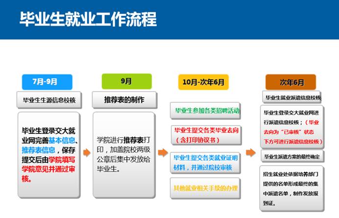 在毕业生就业工作流程部分,戎老师按时间顺序,以图文结合的形式依次向同学们讲解公司对毕业生就业的工作安排流程,从毕业生生源信息校核到招聘活动最后到毕业生就业派遣信息校核,戎尚老师都做了完备的讲解。接下来,戎老师讲解了同学们应在哪填写、如何填写推荐表和就业协议,并附上了相应的网站链接及其相应的政策发布平台网址。