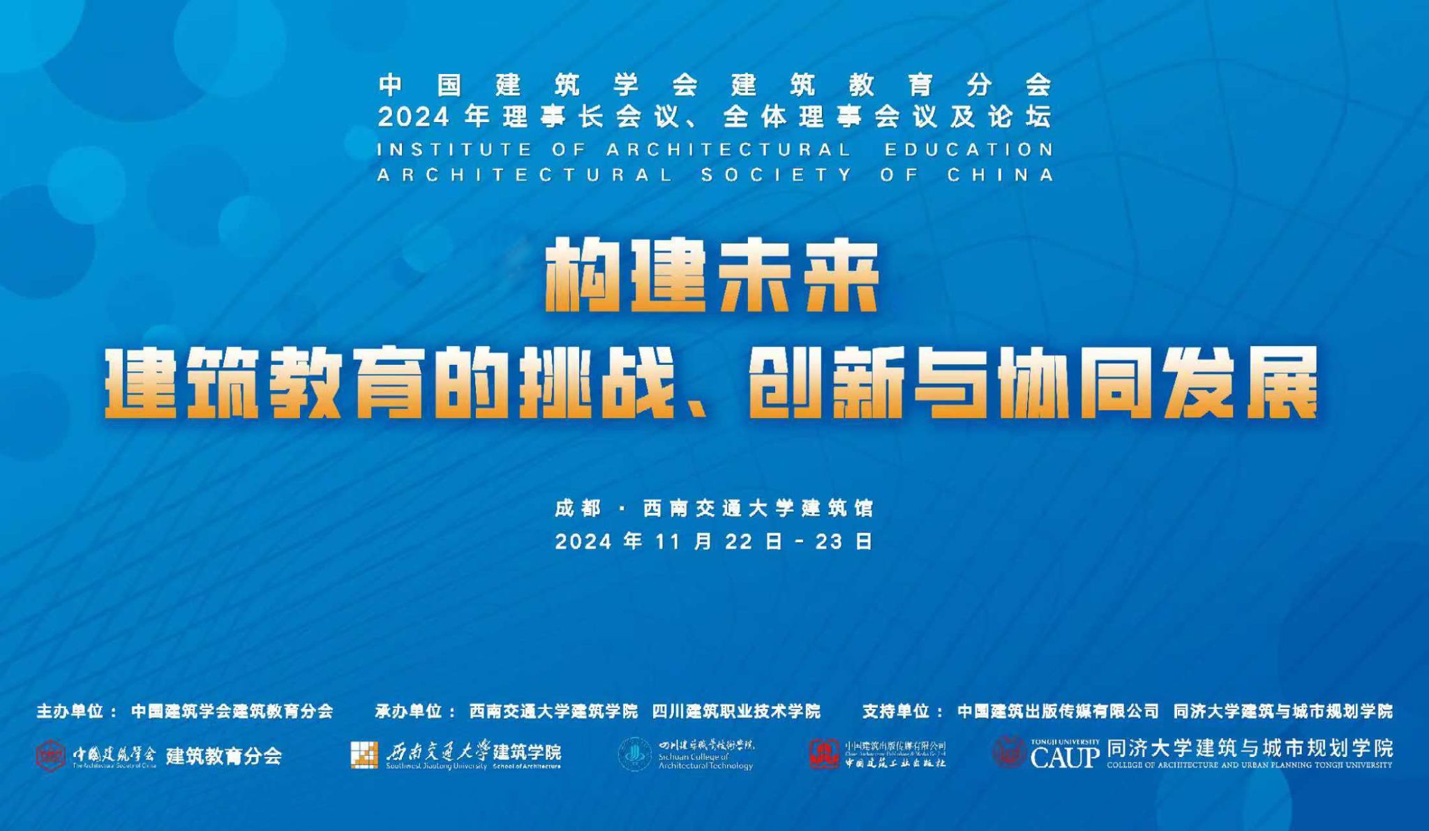 根据中国建筑学会的安排和相关规定,建筑教育分会将于2024年11月22日-23日举行会员代表大会、理事长会议、全体理事会议及教育论坛。本次论坛由中国建筑学会建筑教育分会主办,新葡的京集团35222vip与四川建筑职业技术公司承办。论坛将在新葡的京集团35222vip建筑馆举行。