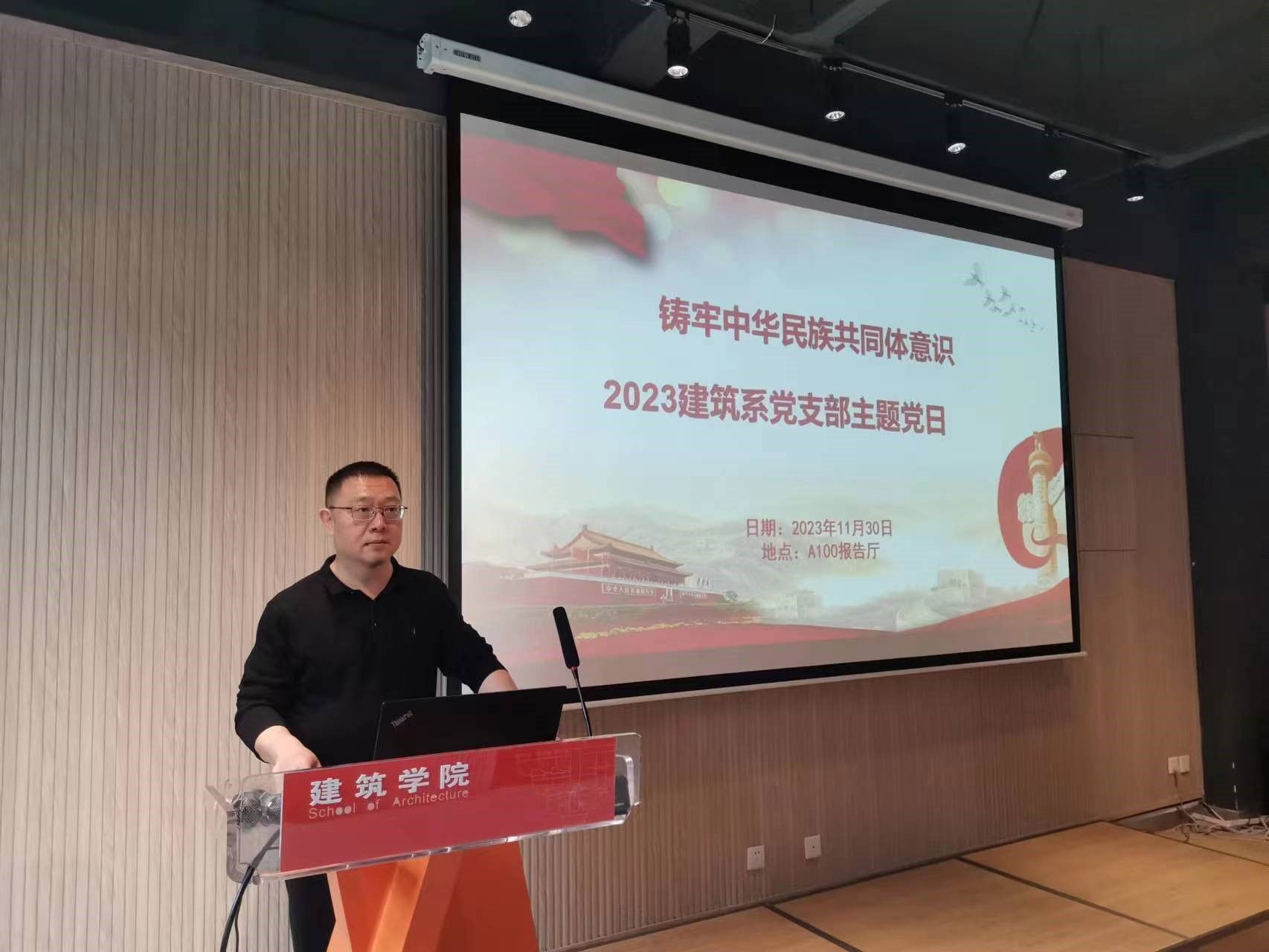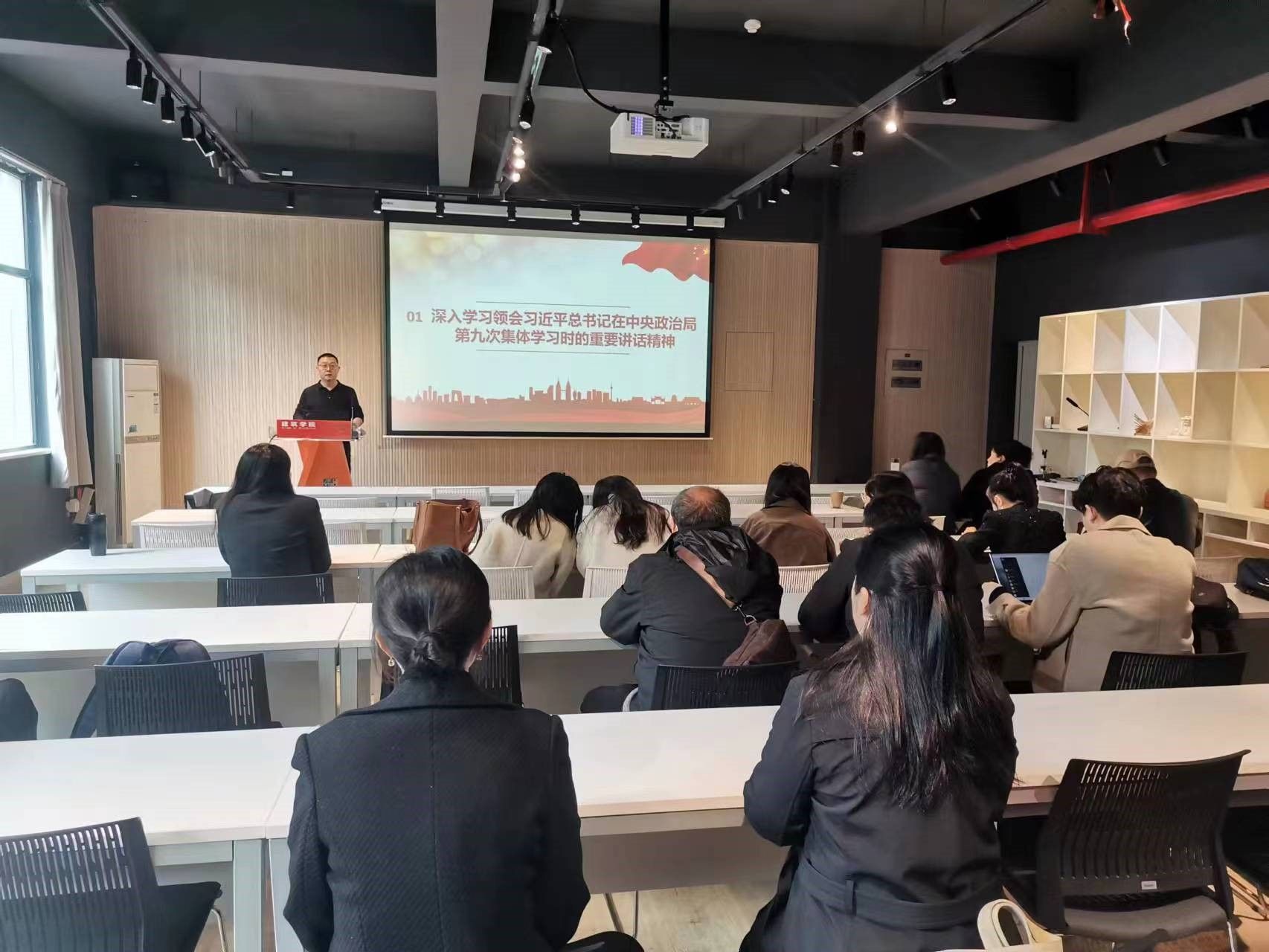 2023年11月30日下午13:30建筑系党支部在新葡的京集团35222vipA100召开学习习近平总书记重要讲话精神主题党日活动。支部书记熊瑛同志领学了习近平总书记在中央政治局第九次集体学习时的重要讲话精神和在第三届“一带一路”国际合作高峰论坛开幕式上的主旨演讲精神,之后认真学习《中国共产党党徽党旗条例》规范党徽党旗制作、使用、管理。